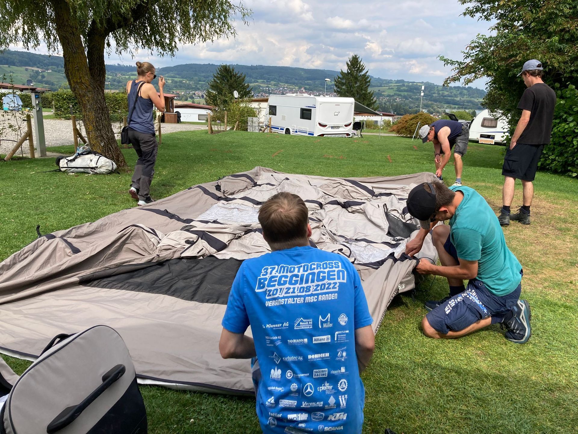 Wir haben zusammen unsere Zelte aufgebaut.